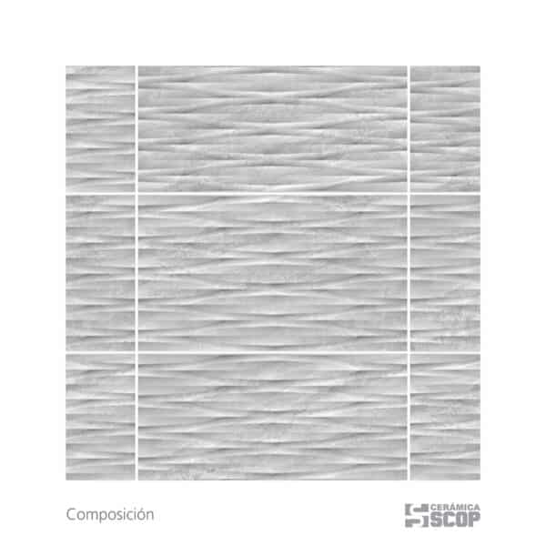 Ceramica de alta calidad diseñada exclusivamente para tus ambientes interiores, destacándose por su superficie con relieve que aporta una textura tridimensional única y una profundidad visual sofisticada a cualquier espacio. . Gracias a su baja absorción y fácil limpieza, es una solución ideal para zonas como baños, cocinas ofreciendo una estética contemporánea que combina durabilidad con diseño.